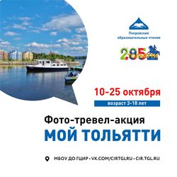 Фото-тревел-акция «Мой Тольятти» для обучающихся 7-18 лет, семейных коллективов с детьми от 3 до 18 лет проведена 10 - 25 октября 2022 г. в заочном формате. Участниками акции стали 502 работы, представленные 240 учащимися из 54 образовательных организаций (школы №№ 1, 3, 5, 6, 9, 11, 13 ,21, 25, 28, 35, 37, 40, 43, 47, 51,58, 59, 60, 66, 71, 72, 74, 75, 77, 79, 88, 89, 90, 91, 93; интернат № 4; детские сады №№2, 16, 27, 46, 49, 51, 69, 76, 84, 90, 93, 110, 120, 138, 140, 147, 182, 210; МБОУ ДО Гранит, ГЦИР).