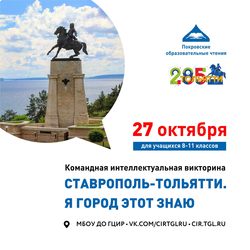 Командная интеллектуальная викторина «Ставрополь-Тольятти. Я город этот знаю» для учащихся 8-11 классов проведена в очном формате 27 октября 2022 г.