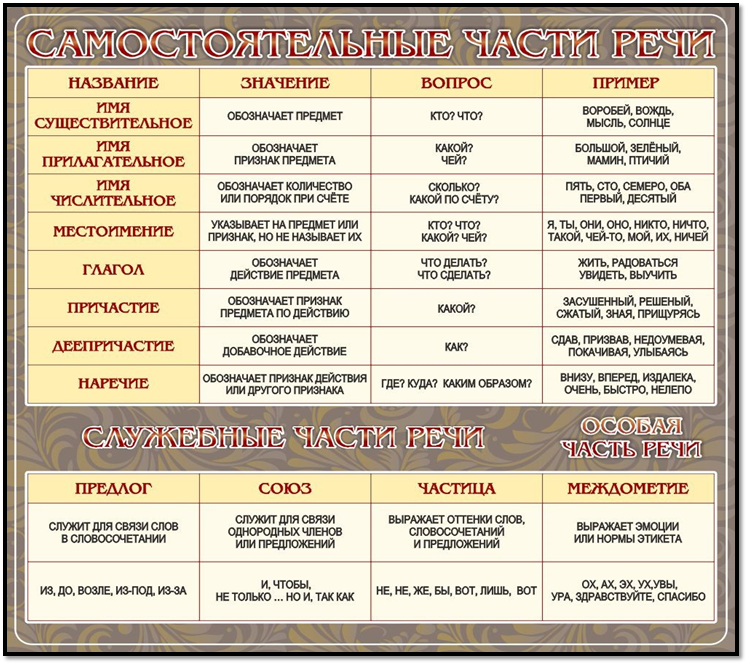 ЧАСТИ РЕЧИ В РУССКОМ ЯЗЫКЕ